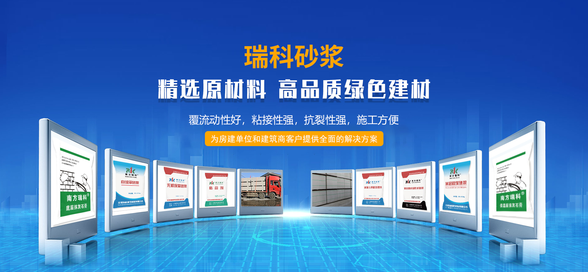 從建公司伊始,瑞科人便把產(chǎn)品的質(zhì)量當(dāng)做是自己的生命,目前我公司“瑞科”不僅有普通砌筑抹灰砂漿,還擁有種類多樣的特種砂漿;例如:石膏砂漿(底層抹灰石膏砂漿、面層抹灰石膏砂漿、輕質(zhì)底層抹灰石膏砂漿、保溫層抹灰石膏砂漿);抗裂砂漿{聚苯板}(EPS)、擠塑板(XPS)、水泥發(fā)泡板};粘結(jié)劑(陶瓷磚粘結(jié)劑、保溫板粘結(jié)劑);防水砂漿(普通防水砂漿、聚合物防水砂漿);地面砂漿(普通地面砂漿、水泥基自流平、石膏基自流平)等。同時我們還擁有蒸壓加氣塊,ALC板等建筑材料,堪稱高品質(zhì)綠色建材,深受房建單位和建筑商的歡迎。